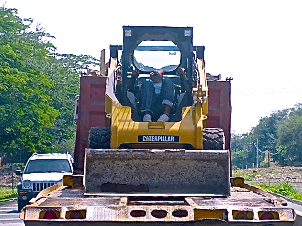Which way is forward? I drove behind this man in his privately-chauffeured front-end loader for six kilometers before I finally turned off. I don’t know why it tickled me so much. Perhaps it was because we were facing each other the entire way. For awhile we just stared at each other. Eventually, he put his head back and feigned sleep.