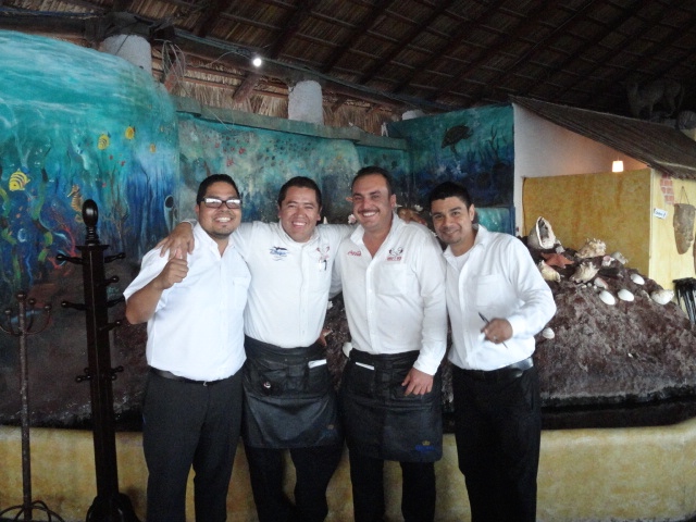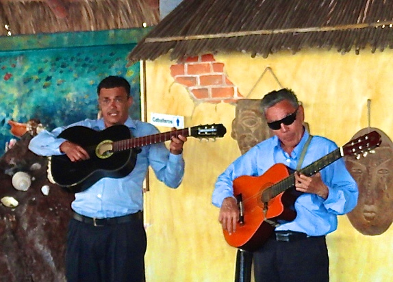 I fell off my bar stool trying to get this picture. The Mexican lady at the next table looked at me with some disgust. I’m sure she thought I must be a drunk and disorderly Gringo. In reality, I had barely tasted my pina colada and was merely clumsy. (I  don’t know why the younger musician held his guitar up so high.  Perhaps he was accustomed to a higher tide.)