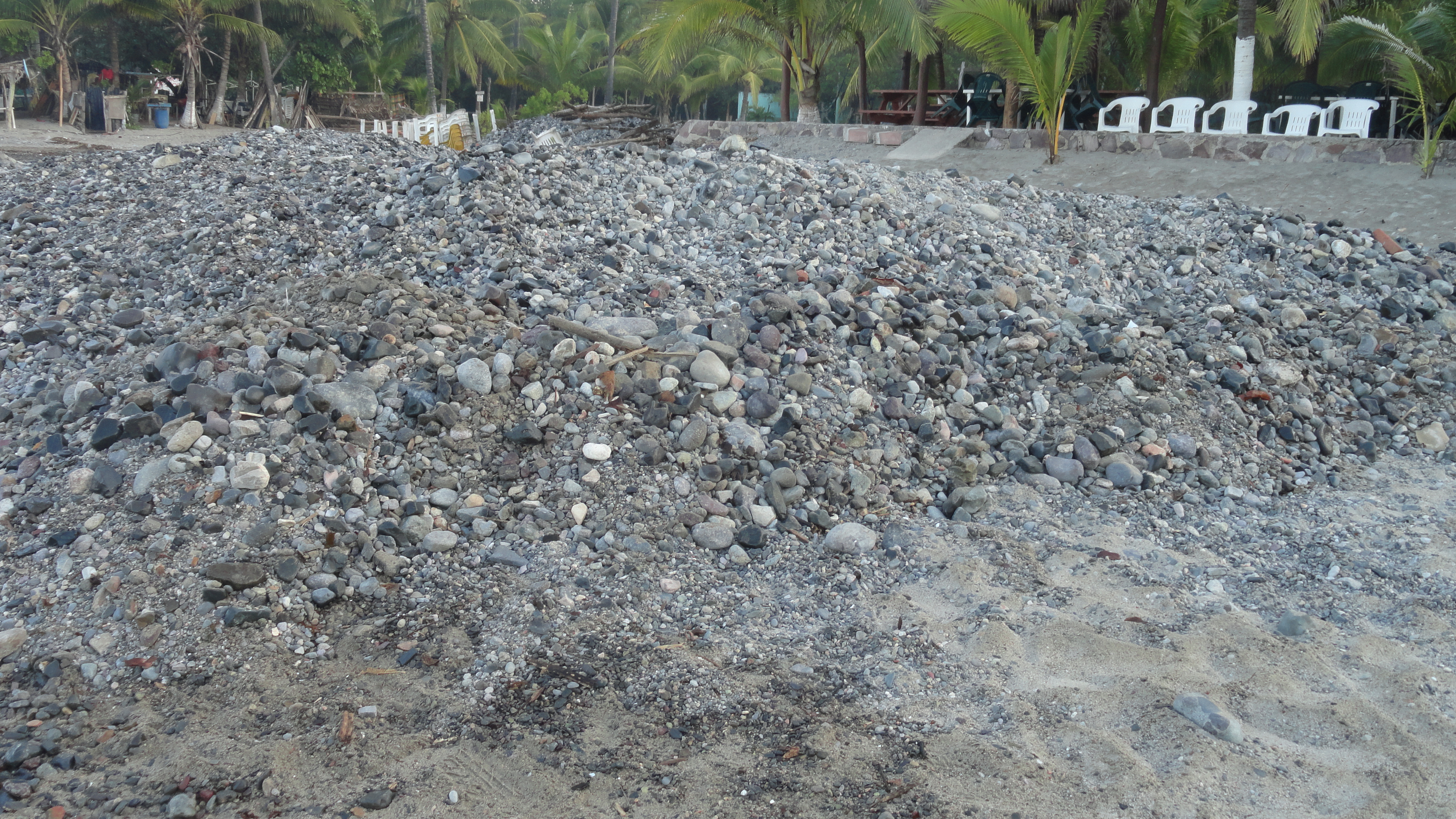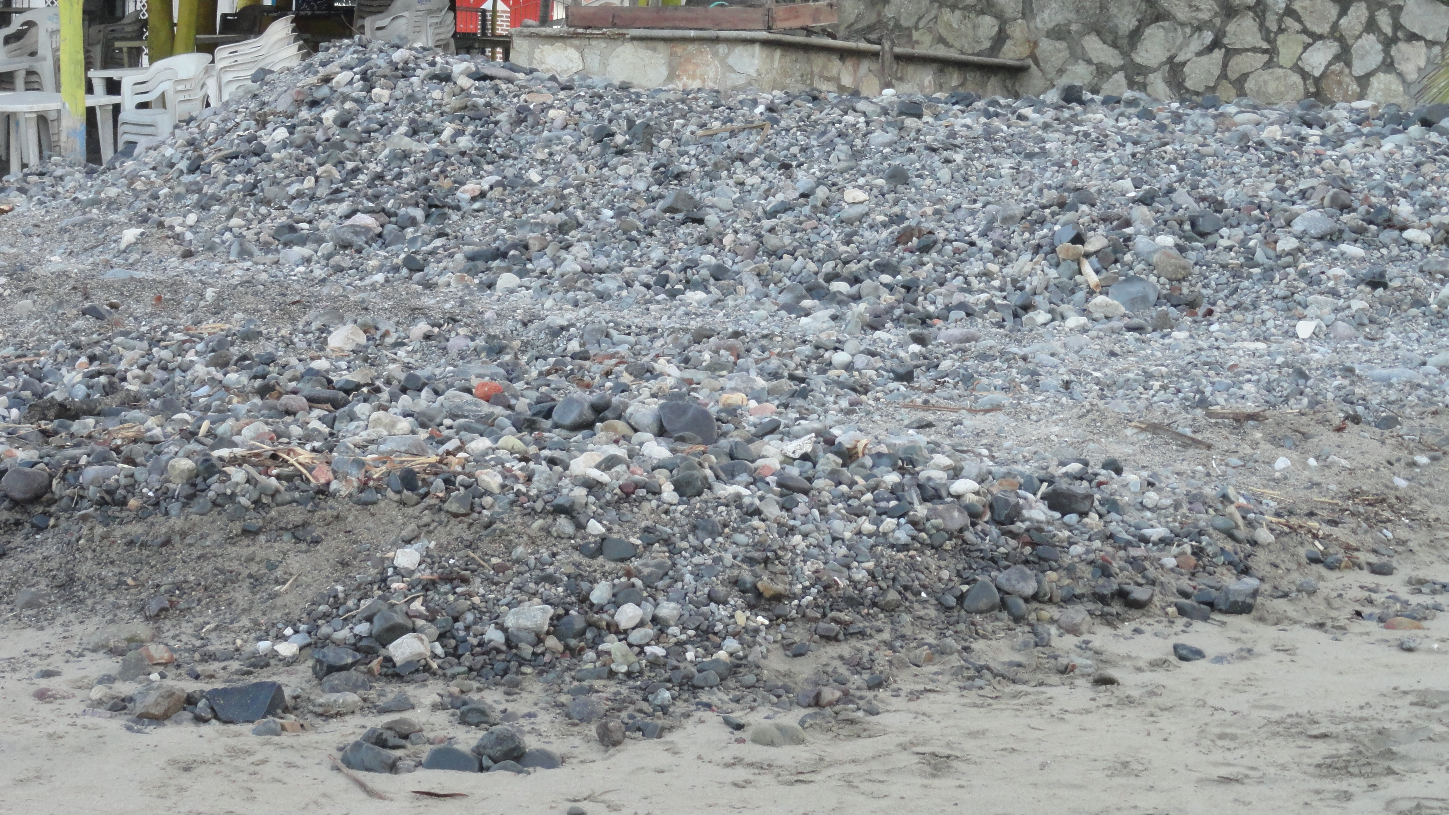 When I arrived mid-November, big storms had brought tons of stones to cover the beach in La Manzanilla. Bulldozers worked for days to clear the stones and move them back into the ocean, which made for tricky stepping for swimmers trying to get beyond the surf line.