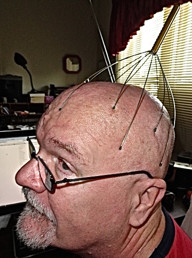 I make no excuse for the friend pictured in the above headgear. The first he actually found in his own closet and yes, it has a tail. The second reflects his confusion over just what the headscratcher I gave him was meant for. I later discovered he’d been wearing it out to parties! If you’d like to see more of this silly man, look HERE.