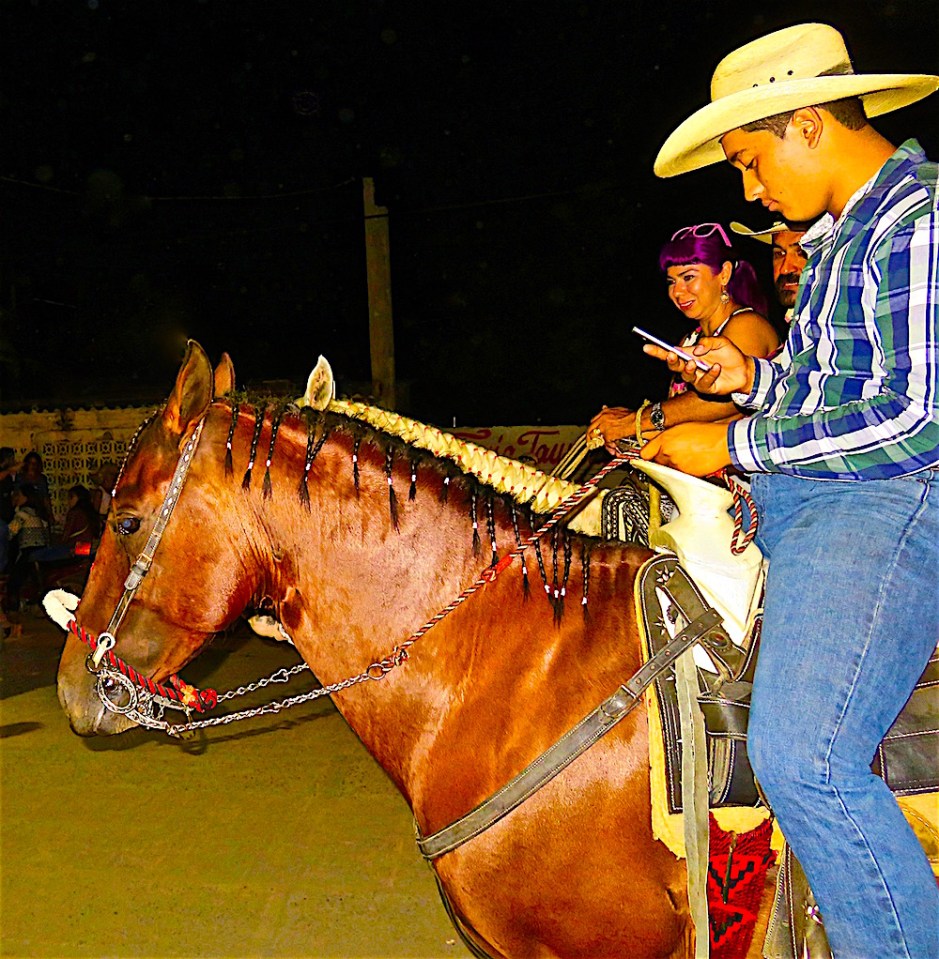 IMG_3014 (1) ← Previous Next → Even cowboys get the urge to text now and then. Fortunately for me, because he stopped to do so and I got to photograph his horse’s intricate hairdo. Cowboys don’t text and drive!!