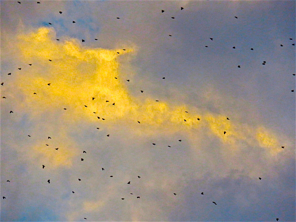 Love this picture. We once sat on the grass by a school in Portland Oregon watching flock after flock of starlings appear and disappear down a tall brick chimney, where they would stay until ready to fly on in their migration. The teachers and pupils had agreed to keep the furnace off until then, and went to classes in their coats. So magical.