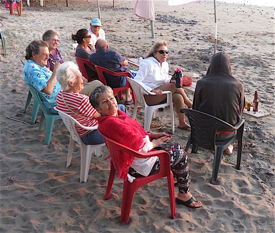 Then, back at the beach bar, who is that hooded guy, anw\yhow?