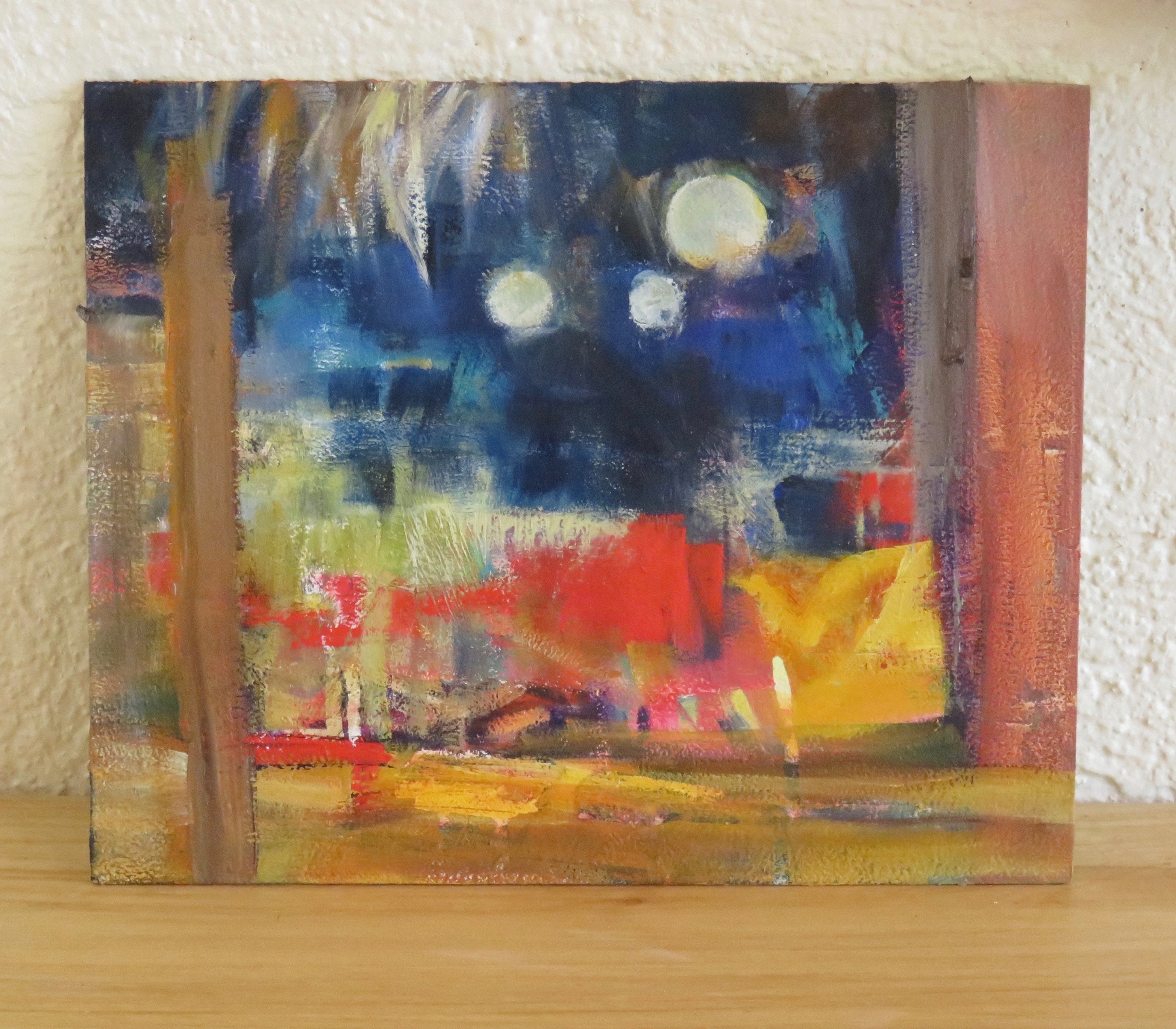IMG_3262 ← Previous Next → I see streetlights, a traffic barrier, trees, buildings, a park bench. What do you see? I’m sure Carol would say this is unfinished. What will its next phase reveal?
