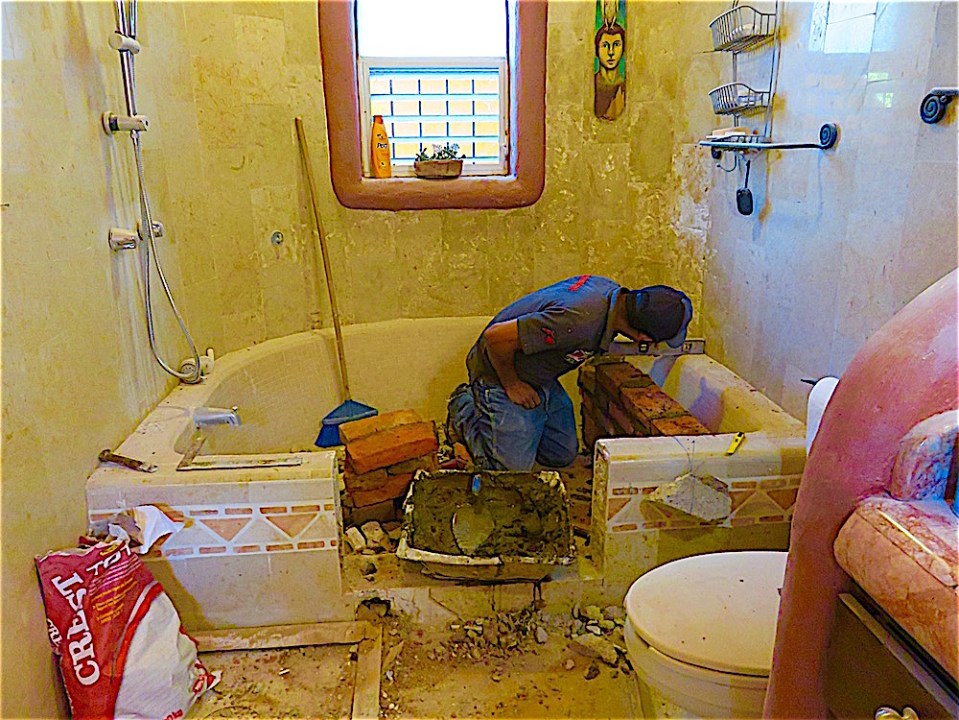 Bench for taking a rest during the rigorous task of showering.