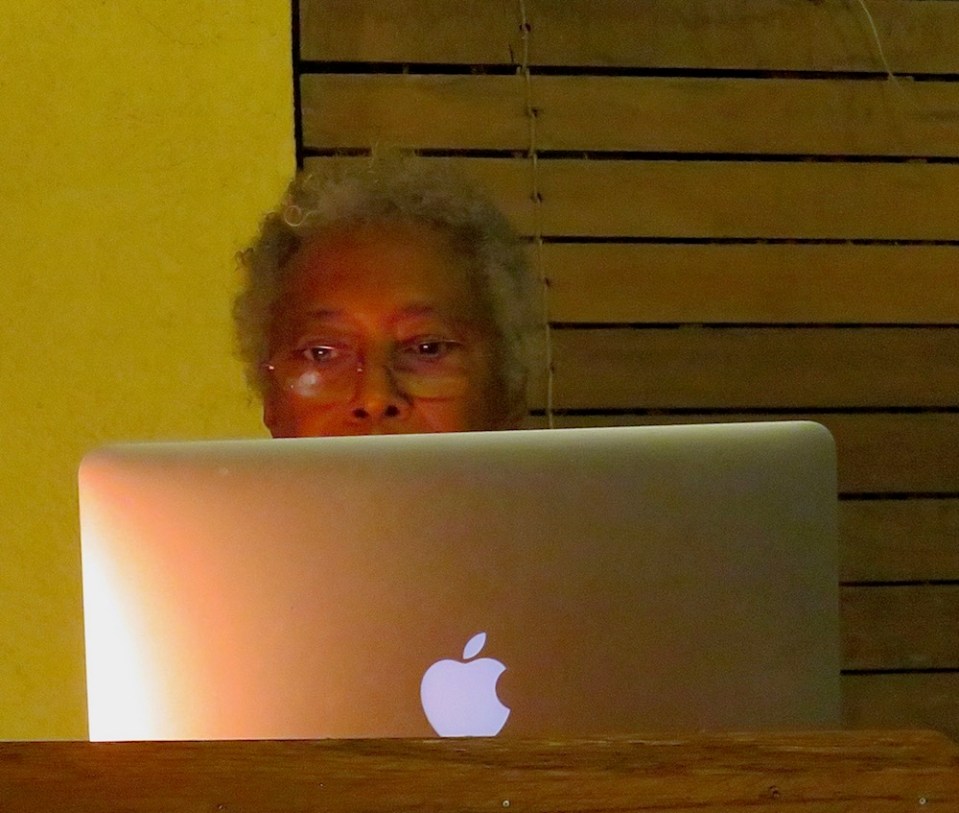 IMG_7978 ← Previous I was right in front of the lectern and a bit shy about clicking too many photos, so this is the best I could manage of Alice Walker’s touching presentation of her current work.