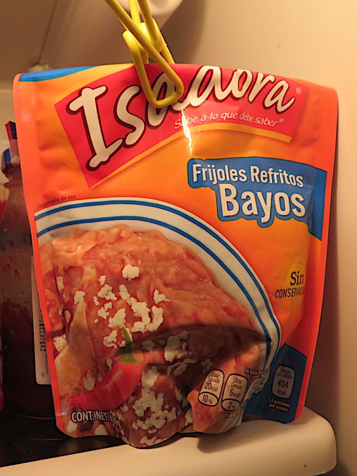 IMG_0449 ← Previous Ironic that this envelope of prepared frijoles refritos is on the shelf right above my labor of love. Who wouldn’t be tempted to mix them into rest to swell its size? I resisited.