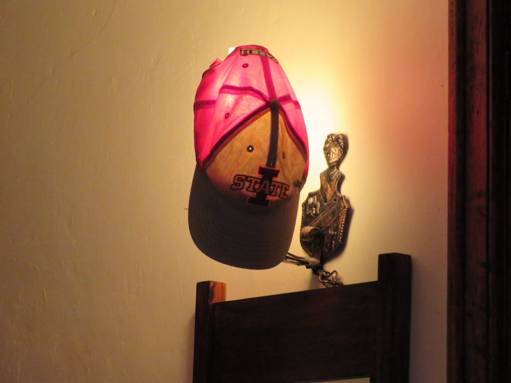 IMG_1557 ← Previous Next → Ryan’s hat drying out on the wall lamp after he was caught out in the rain during his big night out on the town.