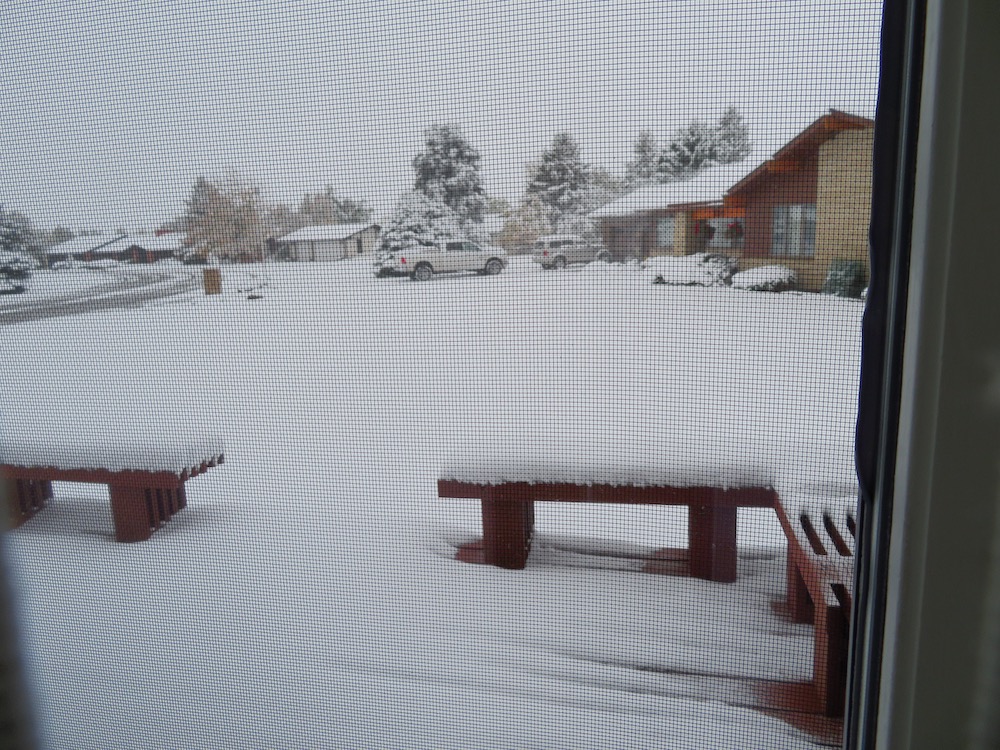The back porch went from a light dusting to a heavy icing,