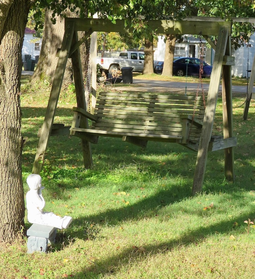 IMG_3695 2 ← Previous Next → and a stone kid who will never swing in that swing. Unless, perhaps, on Halloween Eve, some trickster relocates him to his desired spot.