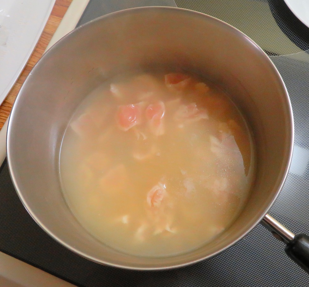 IMG_4703 ← Previous Next → Velvetize by cooking in chicken broth on top of stove. (Just the chicken. You’ll use the rest of the ingredients later.)