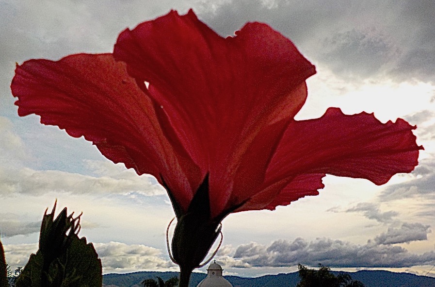 Gray skies and cold rain all day long but this hibiscus reminds me of Xmas just over the hill.