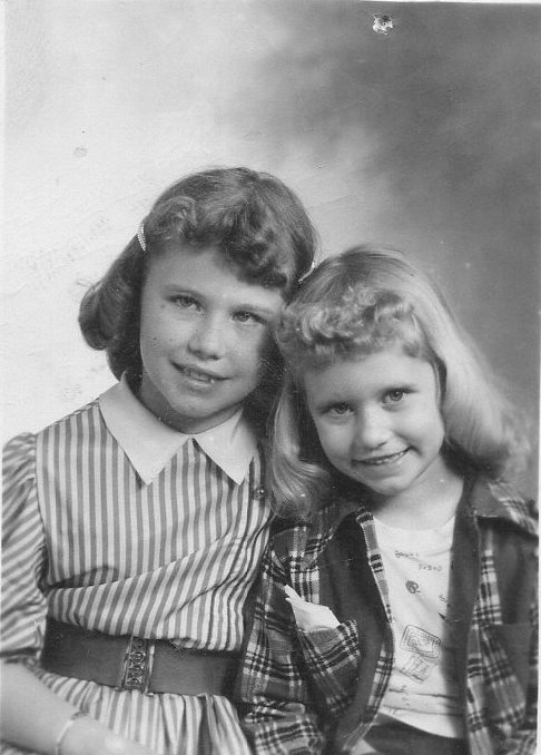 Patti and Judy school shot ← Previous Our sisterly school photo. I was in the first grade. She was in the fourth. I inherited that dress!
