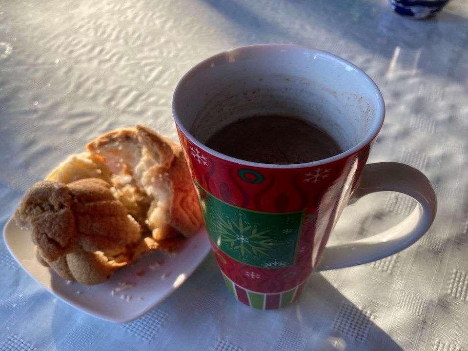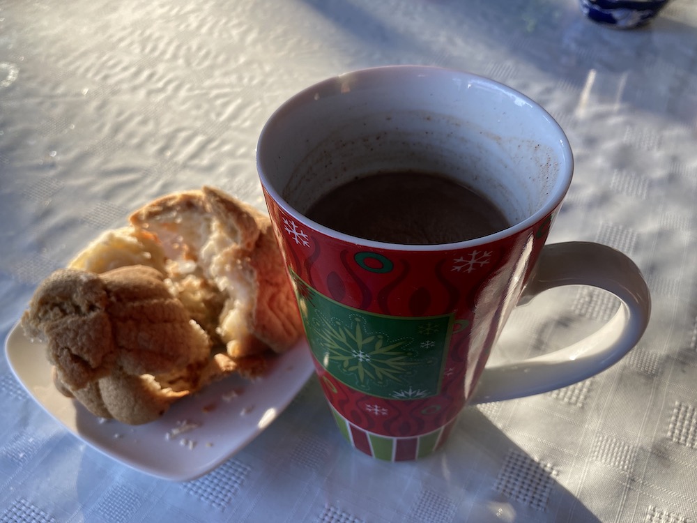 Then Oscar brings us hot chocolate and a pastry.