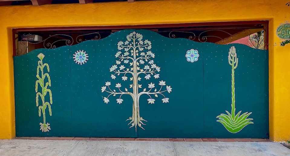 My garage door with embellishments by Jesus.