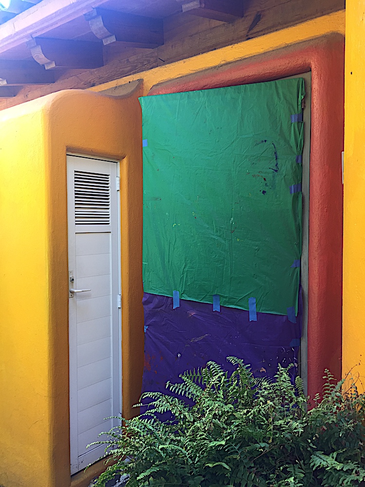 IMG_5218 ← Previous Next → The next morning, Pasiano and Yolanda decided it might be a good idea to resort to plastic to cover the screen door–in this case the plastic tablecloths I use for kids’ art classes.