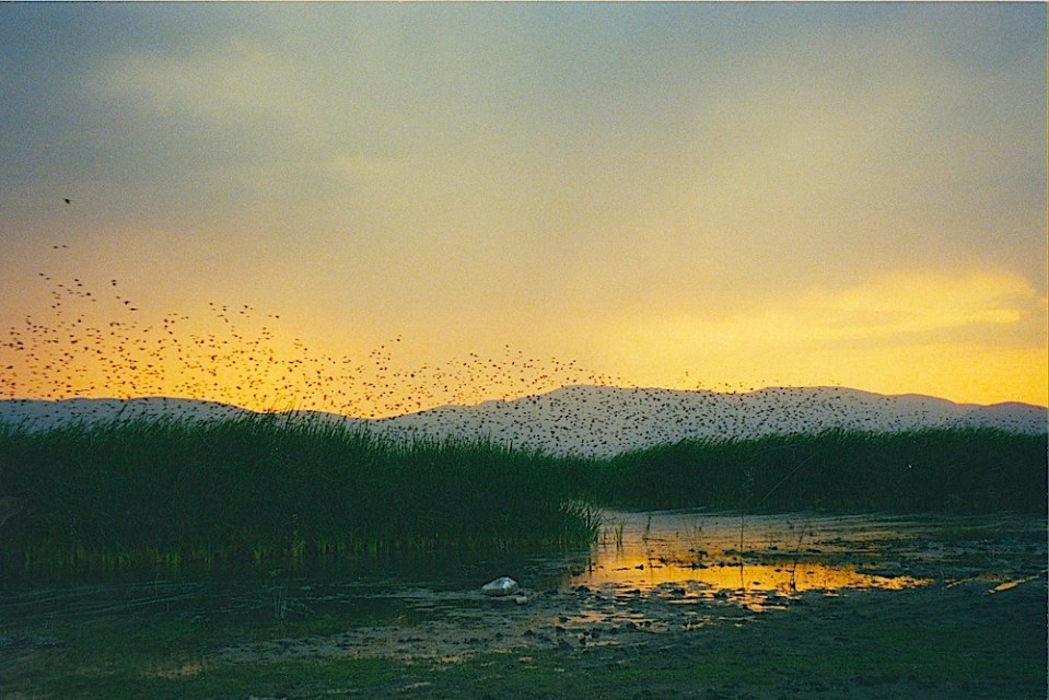 Night lifting of blackbirds from the cattails on Lake Chapala.