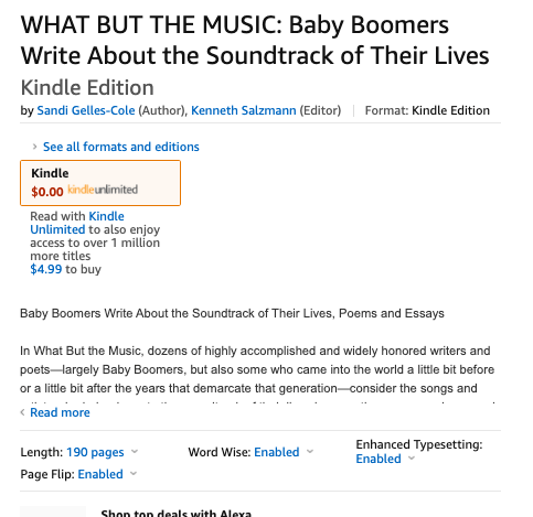 WHAT BUT THE MUSIC, an evocative new anthology of personal essays and poems about “the soundtrack of our lives.” The collection includes work by Judy Dykstra-Brown, Bill Frayer, Sandi Gelles-Cole, Janice Kimball, Rachel McMillen, Tom Nussbaum, Herbert W. Piekow, and Kenneth Salzmann.