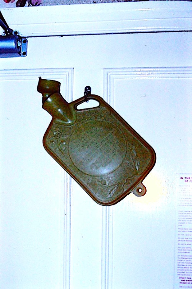 Oh Judy you should not have done this, even to me~! You should know that back in grammar school days with “Show-n-Tell”, I always did better on the telling than the showing. My mind works in devious ways as you know; like I am old enough to know that the water bottle you show in your post had more than one use, and even had two names, bet your mom knew this~!. It was found in most bathrooms with accessories, and not just to keep your feet warm, but rather hanging by that little hole on the bottom~! May I say it often took the place of a bidet~?