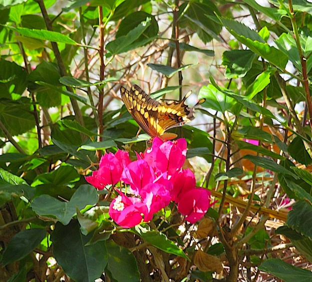 Gorgeous…both the butterfly and the bougainvillea. I have long wished I lived someplace where I had boisterous Bougainvillea!