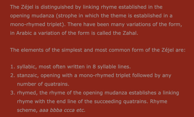 The dVerse prompt today is to write a Zéjel Here is the form: