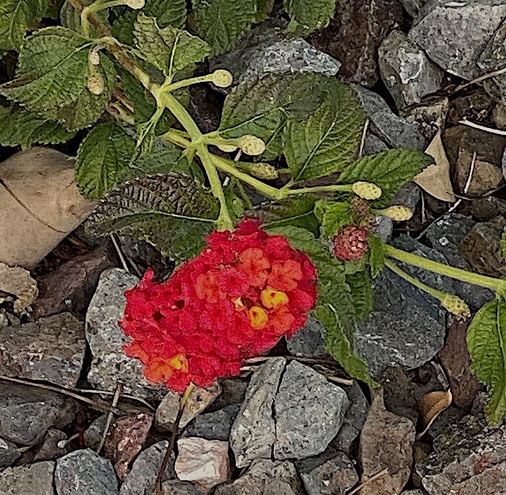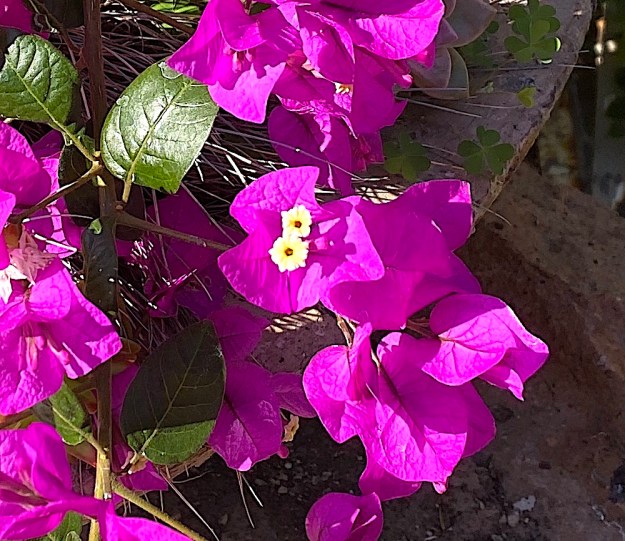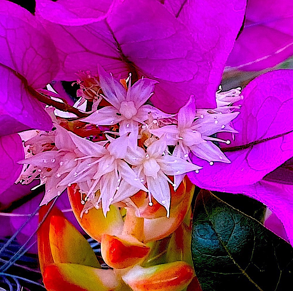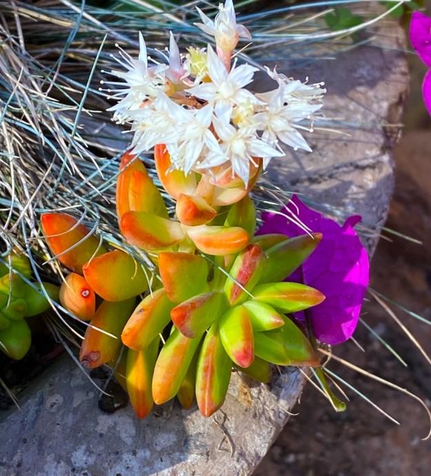 That bloom was actually the bloom of this tiny succulent peeking through the bougainvillea. Another of life’s illusions shattered!