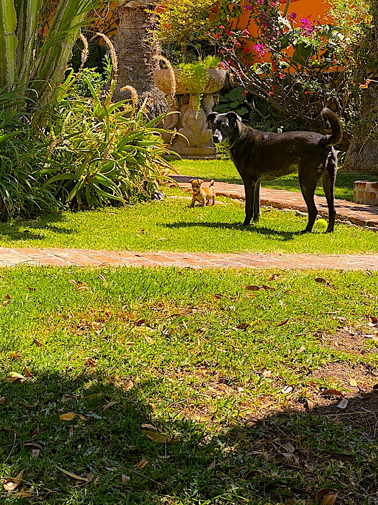 At home, the older dogs and Zoe are not exactly siblings yet.