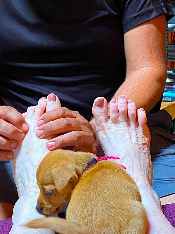 Pepe. Zoe got the first rub, Judy’s foot massage came second.