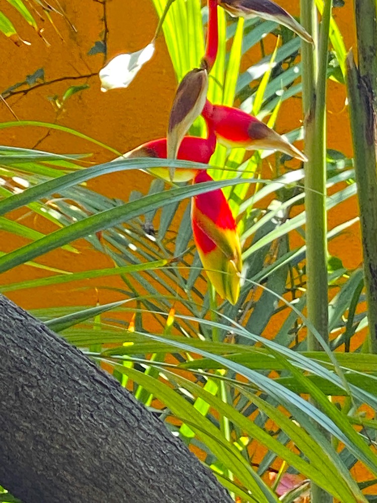 We’ve cleared away a good deal of the “jungle” in front of my house, but are busy planting other plants to replace it, including this Heliconia which now sports four blooms. This is the newest one.