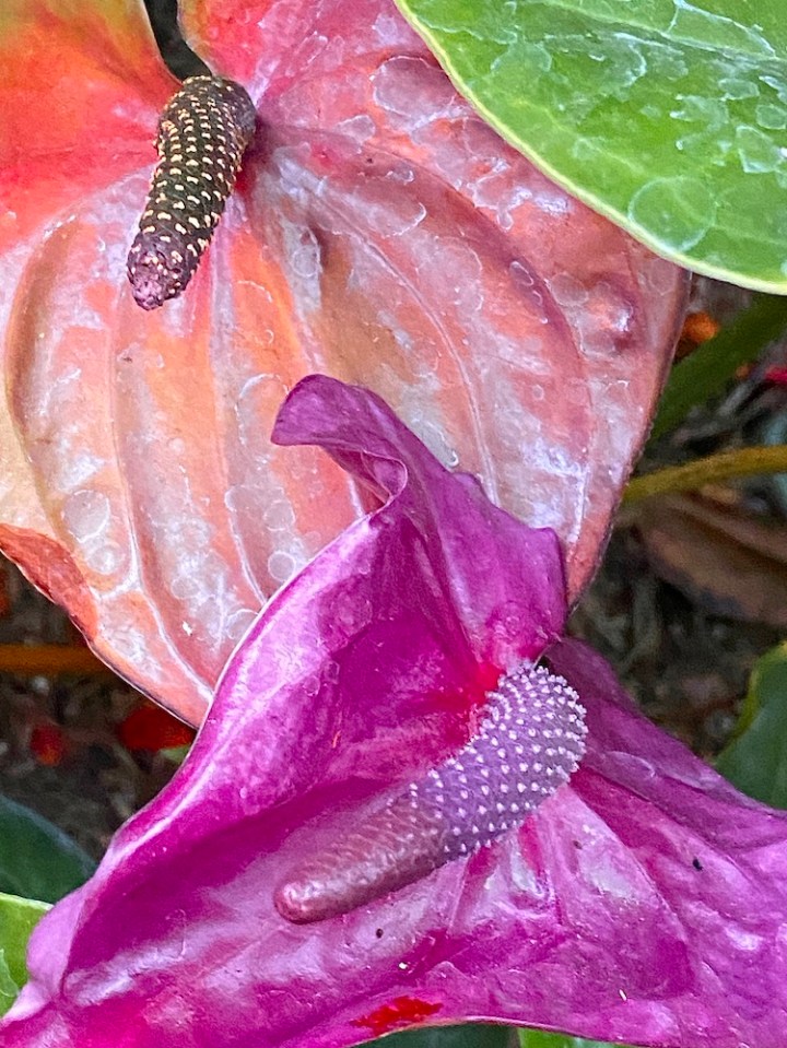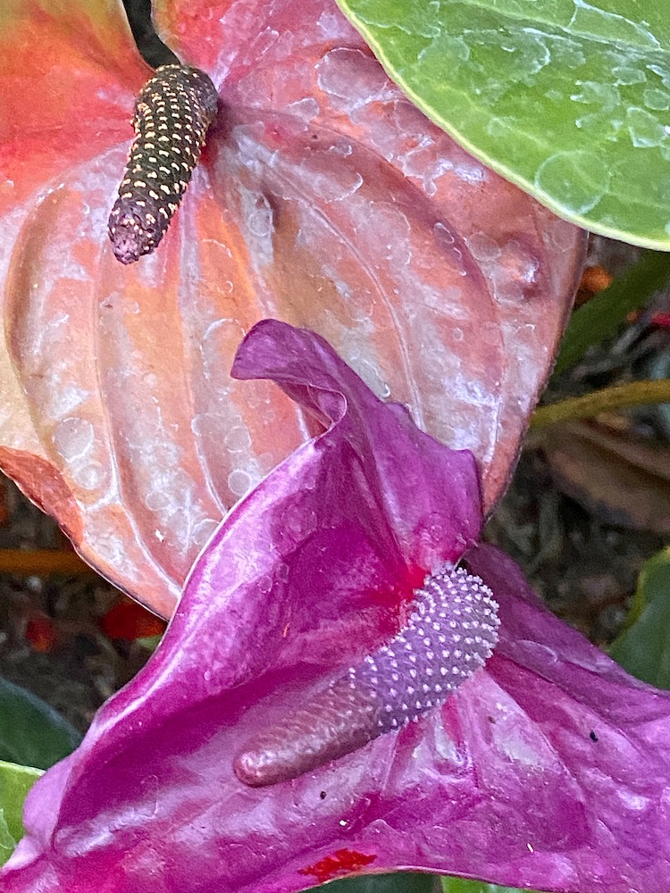 Anthurium ← Previous Next → This anthurium has received an overlay from the high mineral content of our water. It makes for an interesting effect, though.
