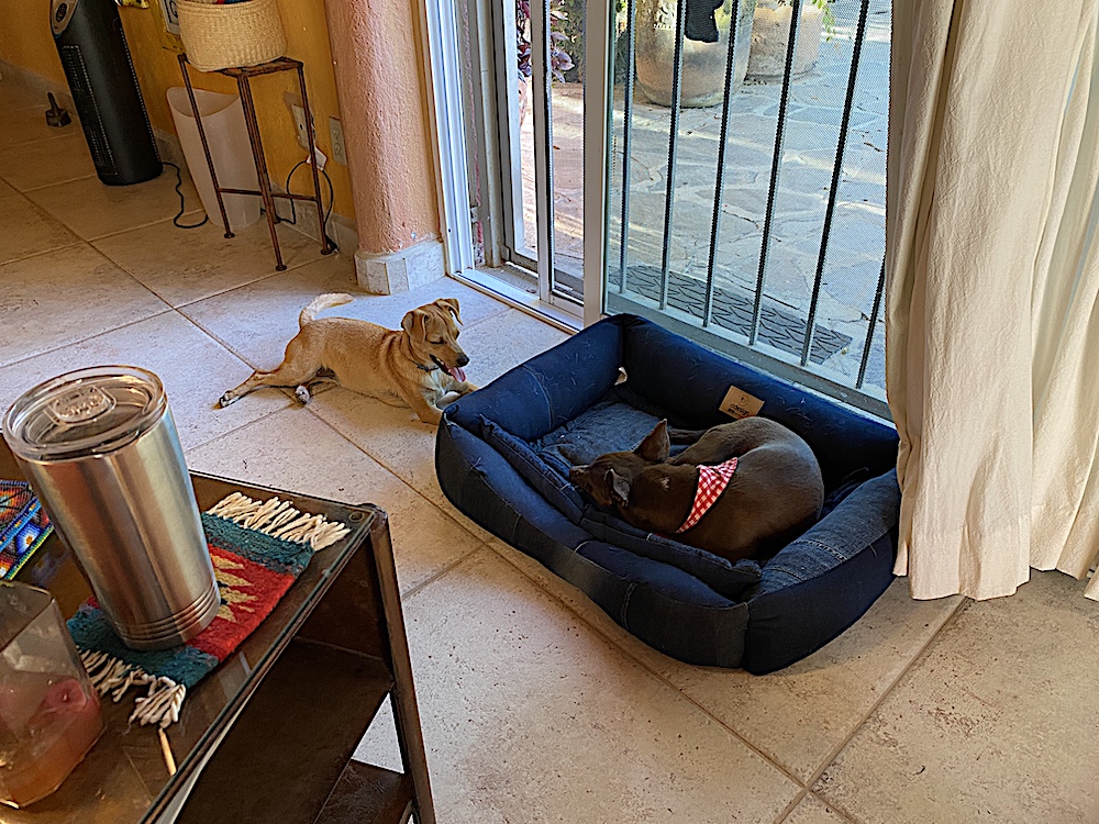 IMG_5269 ← Previous Next → Uninterested in Diego’s former bed in the doggie domain, Chocolate claims Zoe’s bed.