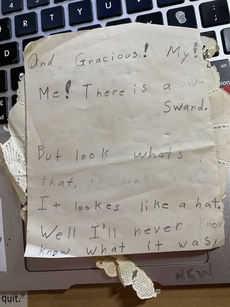 That poem captures the spirit of a child. I’d say my earliest writing is well I preschool right!