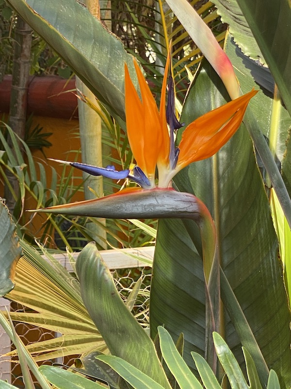 Word choice was an afterthought. The chicken wire is on the fence to keep Coco from getting up on the crossbar and jumping over it..not really to confine the bird of paradise. At first I thought it ruined the shot, then decided it sorta helped make it..but added the caption to convince you of the same.