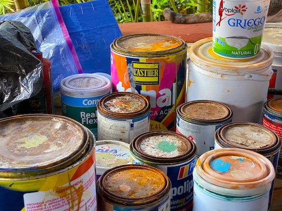 Their usual resting place still usurped by paint cans,