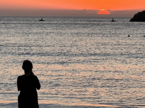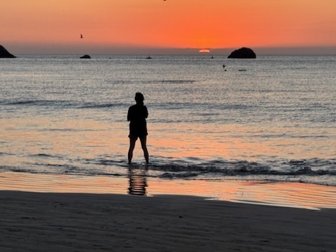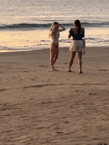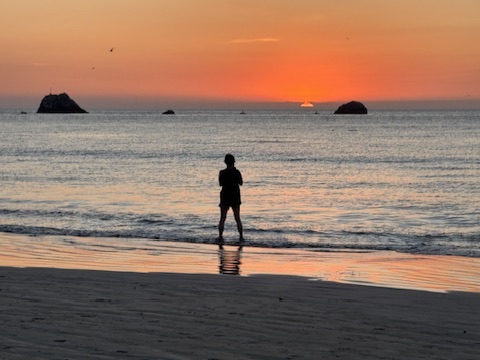 The day started out with an amazing display of the egg-creacking skill of Isidro, who cracked 16 eggs with a single-hand technique and dropped only one bit of eggshell into the bowl!!! Yesterday, as you recall, I was dropping 4 or more tiny eggshell triangles with every egg I cracked. He learned his technique in an Aptos, CA restaurant kitchen and it is still serving him well! Brad was the chef with eggs cooked with tiny pieces of garbanzos, cheese, ham, salami and I know not what else. Delicious. Plus a breakfast tossed lettuce salad. Odd but good. Later we had to drive to Melaque to pay Isidro’s income tax at the bank. Then to lunch on the beach where we were told we were sitting at a rental table and if we wanted to order from the restaurant, we needed to move back to the restaurant section. We never did figure this out as we saw him delivering meals to all of those “rental tables.” Another Mexican Mystery. Then home to walks on the beach, hammock-hanging, a few games of dice and then hammock-talking in the dark under the palapa with waves in the background…Venus shining huge in the black sky. Paradise. Now in bed at 11:30 telling you all about it!