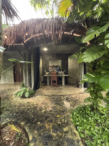IMG_3430 ← Previous Next → My bedroom door to left, kitchen behind slab table/bench facing out to jungle.