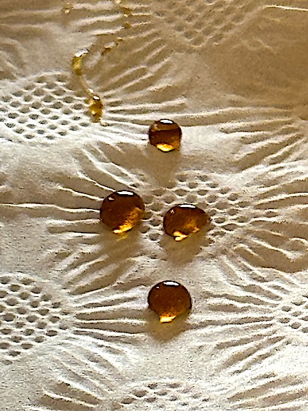 I don’t know why these spilled beads of maple syrup on my napkin at the restaurant intrigued me enough to snap a photo, but they did. Note the little question mark at the top.