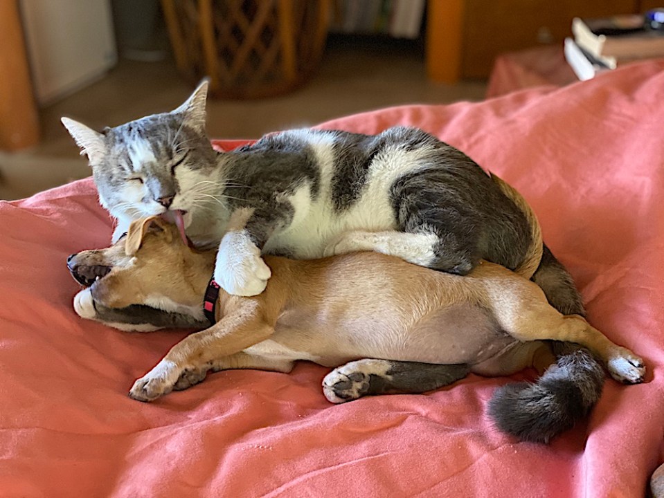 Zoe Ollie Next → And strangely enought, Ollie, once runt of the litter and now the largest and only male cat, became Zoë’s Mom.