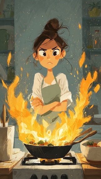 Prompt words for the Three Things Challenge 375 are: killer, kit, kitchen. (Image created with help from AI)