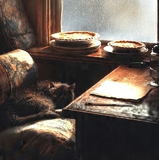Pies upon the window ledge grow soggy in the mist