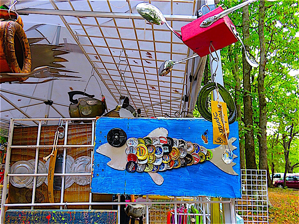 Some people walk the 500-mile Camino de Santiago trail in Spain, but in the heat and humidity, a few hours walking the dirt rock-strewn paths of the yearly Monte Sano Art Show in Huntsville, Alabama were penance enough for me.  For some reason, I took very few photos, but we saw some wonderful and whimsical sights, including the pieces and people shown below.