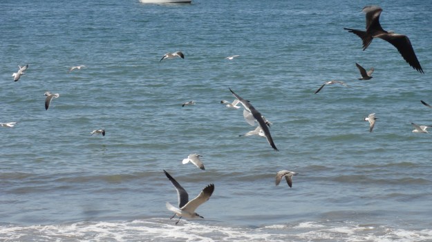 Once I arrived in La Manzanilla, the kite took up residence with my art supplies, sticking up out of a large plastic box that sat on the dining table bench behind the table, which was never used for dining but instead became my computer table and art center. There was much to do–greeting old friends, working on music for CD’s to go with my children’s books, writing groups and readings, planning art activities for friends, swimming, beach combing, dining, dancing, observing the nightly parades that streamed by my house, dealing with the all-night LOUD music from nearby bars, coping with the muffler-less motorcycles that streamed by my house at 3 in the morning.