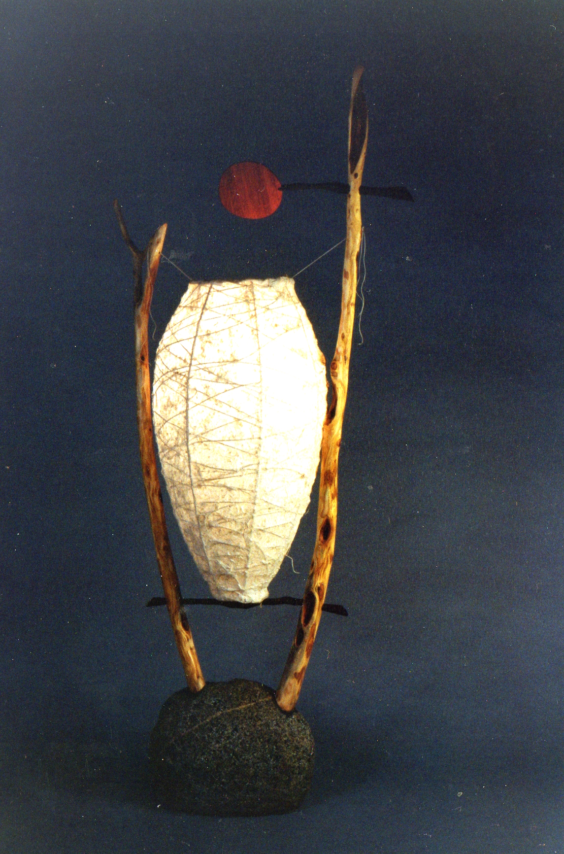 As well as a few more elaborate lamps by Bob Brown & Judy Dykstra-Brown made of Stone, wood, handmade washi paper, waxed linen and willow.