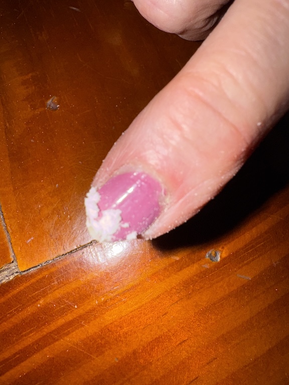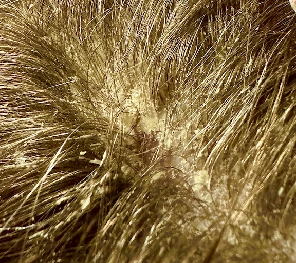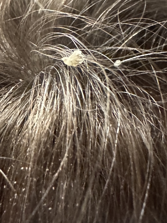 Just crazy. I went in and took a shower, shampooed and scrubbed my head, brushed with soft and then steel bristle brush. Brushed and brushed. Blew dry. Brushed and brushed again.. Later in bed, felt head..still crust in one par–– rebrushed––Went back to bed.