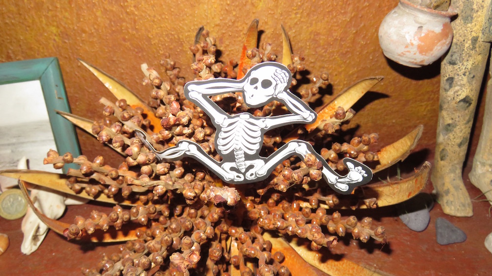 On this particular Dia de los Muertos, death feels more personal, less a remembrance of past losses and more a dwelling with a recent one. The new little dog buries herself closer, her snout beneath my neck, nose snuggled into my hair. Her long pointed ear brushes my glasses frame.
