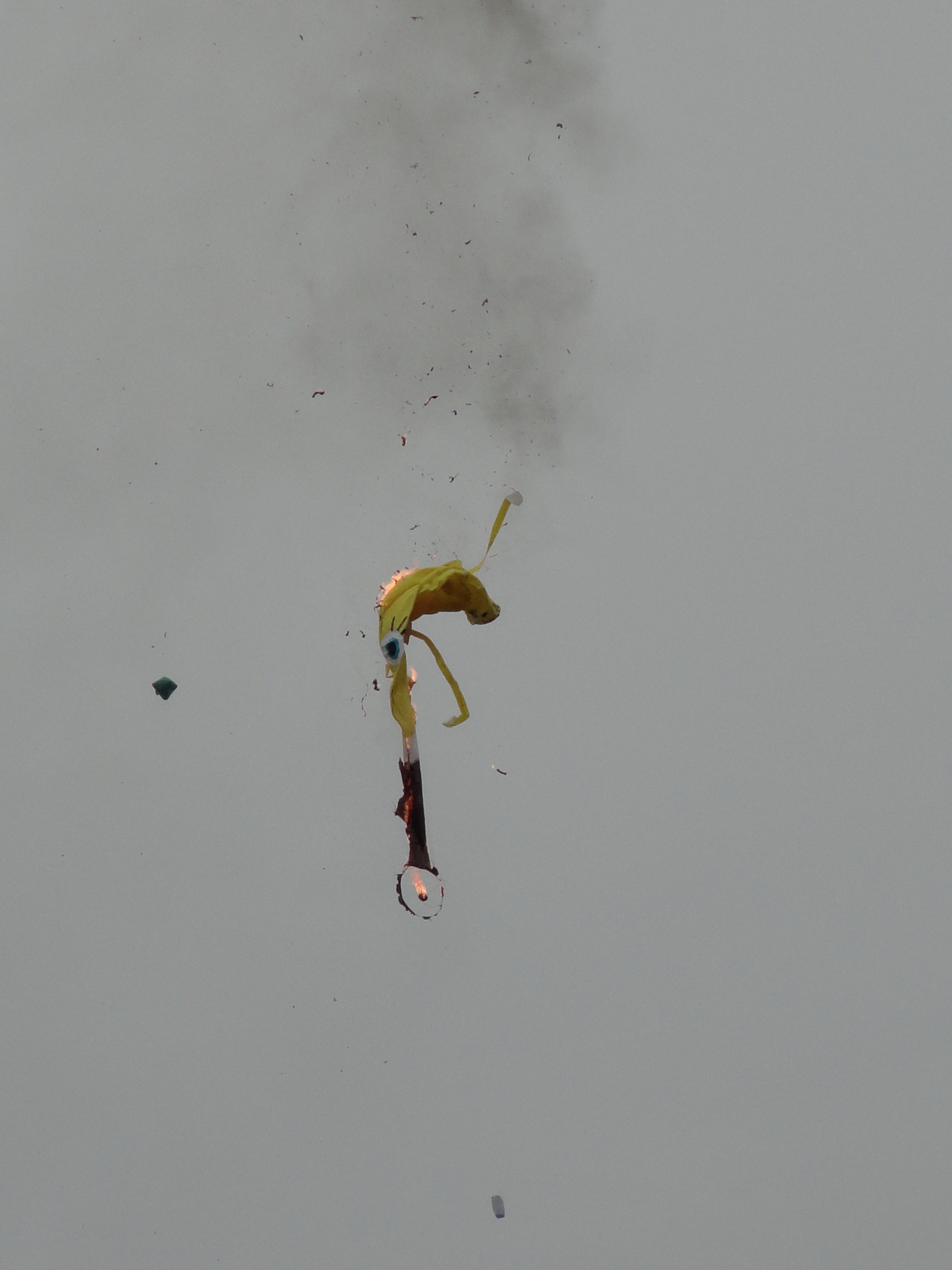 If a picture is worth a thousand words, credit me with six thousand in my six- photo depiction of the word, “Mustard.” Before his early demise, Sponge Bob was a fifteen foot (or more) high hot air balloon made from Tyvec, constructed in Mexico as one of hundreds launched in a yearly Independencia celebration in Ajijic. These balloons take months to design and construct, then up to a half hour to launch, as a crowd of a thousand or more mills around on the ground or sits patiently in the stands of the soccer field, waiting for their ascent. Usually three or four are being launched at any given time throughout the long afternoon and evening. First a fire is lit in braziers to create the hot air to fill the balloon. Then a ring in the center of the bottom of the balloon wrapped in kerosene or gasoline is set fire to keep the balloon inflated and the balloon rises above the heads of the crowds, sometimes floating away to nearby towns, at other times meeting within minutes or even seconds with the fate of Sponge Bob Hotpants. The spectacle of the remains of the burning balloon falling into the crowd or trees or rooftops or highline wires is taken with a fatalism endemic to Mexico. Small boys rush to stomp out the remains of the fire. No mothers scold. No fathers forbid. The crowd pays more attention to food purchased from local vendors than they do with the possibility of being set on fire. This is Mexico. Such things just work out one way or another. A nearby firetruck was never called upon in the time I witnessed the event. Sponge Bob, the most mustard of balloons launched and an annual crowd favorite, was soon history and the only mustard to be seen was on the amazing spiral-cut hot dogs-on-a-stick served in one of the food stands that rimmed the road leading into the soccer field.