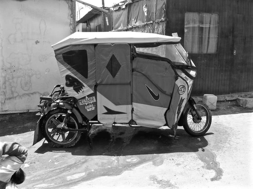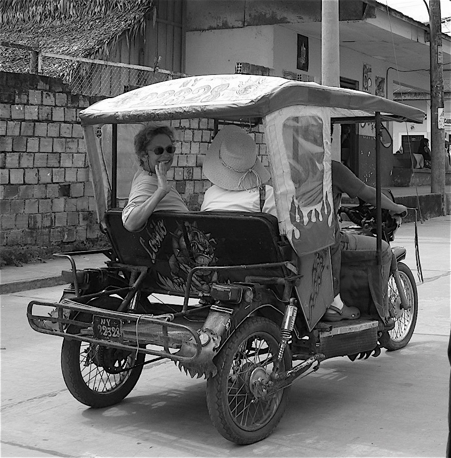 Public Transportation–Peru Style From the shadow of our plane as we flew over the Nazca lines to our boat on the Amazon or the mini-cabs and even mini-police vehicle, Peru furnished some unique modes of public transportation, not to mention the Cristal truck that accelerated in front of us to get to our destination in time to furnish us a frosty reward for a day hard-spent in tourism!