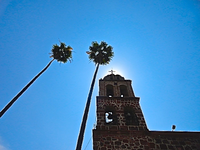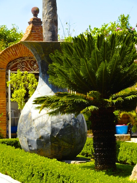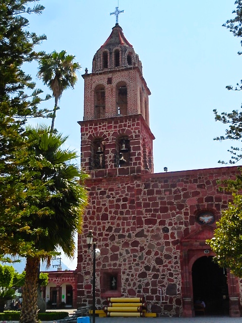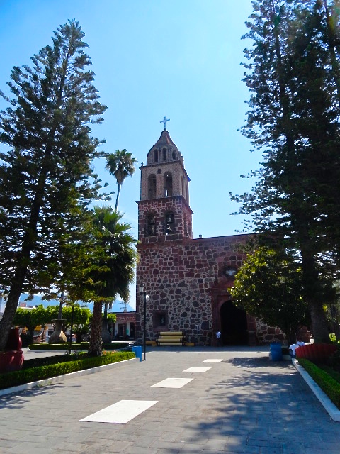 The Jocotepec, Jalisco, church is beautifully constructed of irregularly-shaped stone with smaller stones laid into the grout.  The base of each of the huge palm trees in the courtyard is surrounded by a huge metal or clay pot handcrafted by local artisans.  Although I live in the municipality of Jocotepec, my village is actually the smaller pueblo of San Juan Cosala.