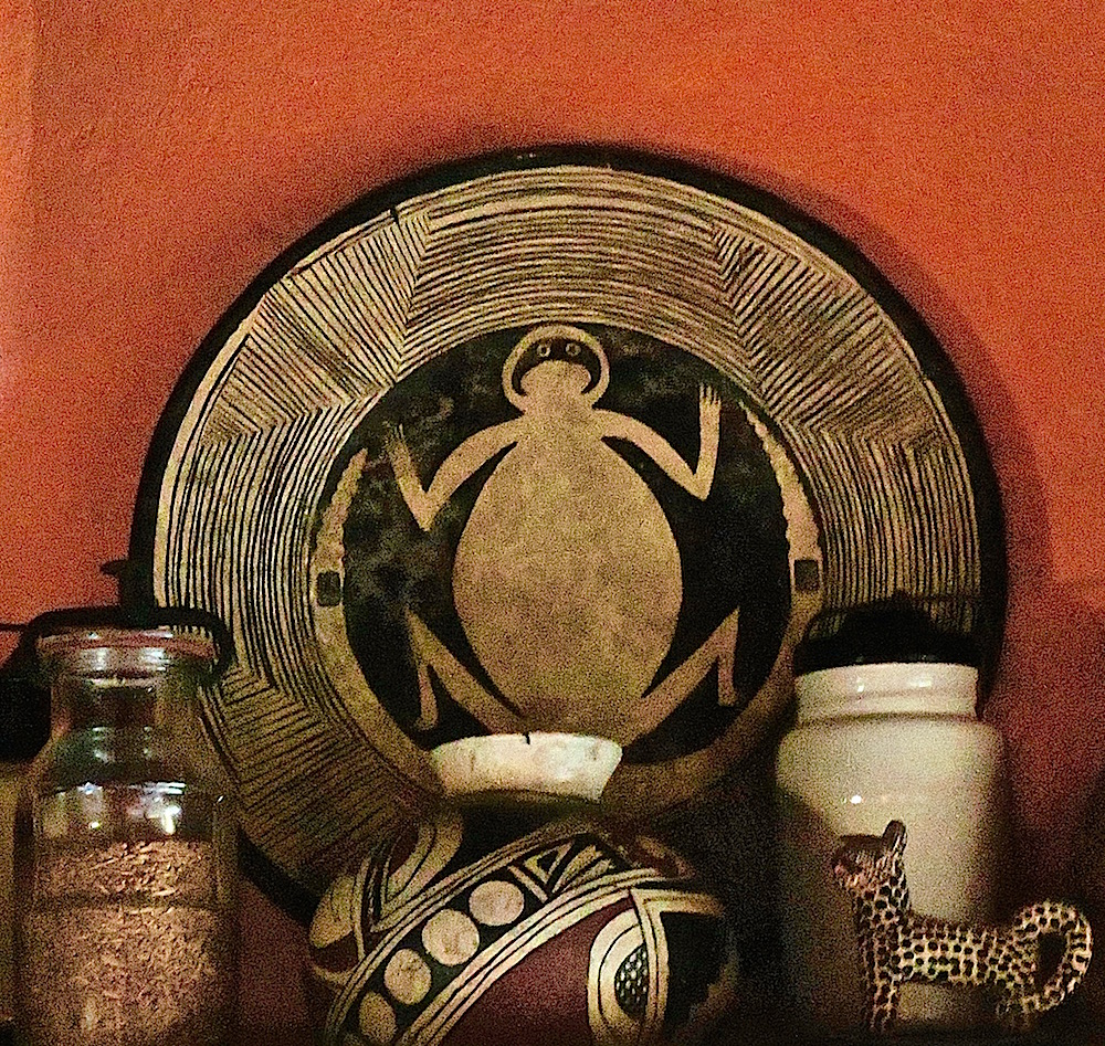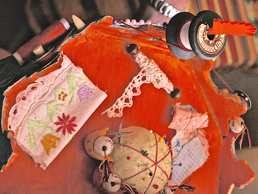Detra de las Puertas Cerradas (Behind Closed Doors) One’s own living room can become entirely too comfortable. Shutting the drawers to the past may open the doors to the future. (retablo by Judy Dykstra-Brown)