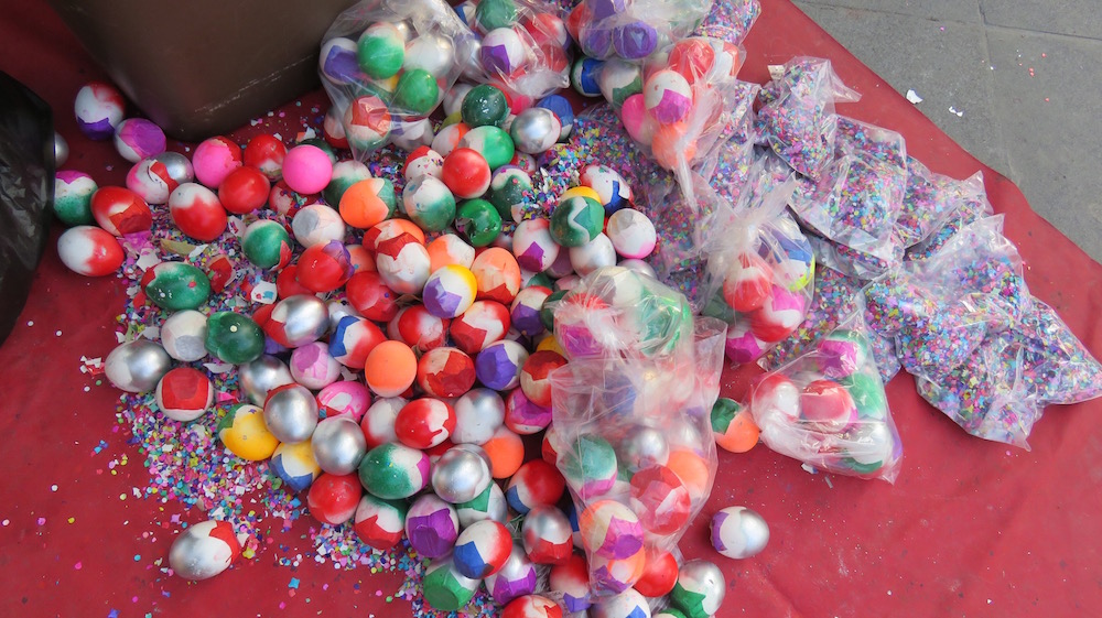 If you are looking for color, Mexico has it no matter what your focal length is–from far and near. I couldn’t resist this pile of confetti eggs in the Ajijic plaza. The idea is to break them over the head of a friend–not by throwing, but by getting him/her in closer focus and then crushing it over his/her head. This creates a colorful friend and a big mess, so don’t try this at home, kids!